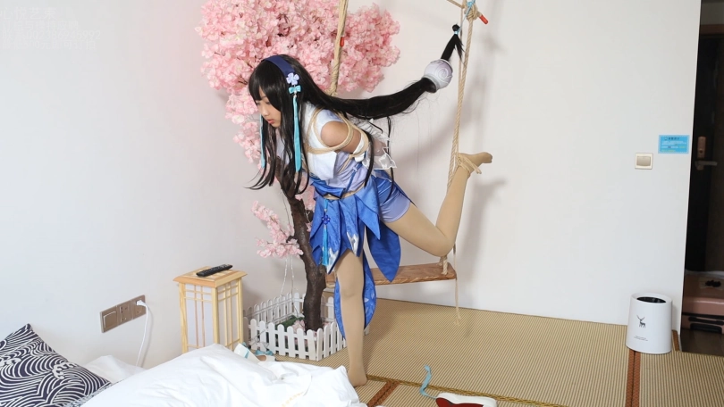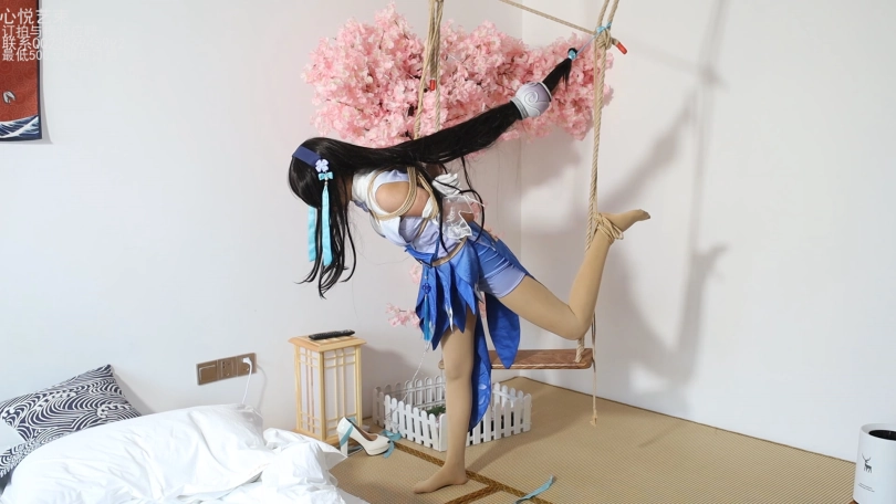 【心悦艺束】高二妹子温馨的西施COS下,日式后手和片足缚悬挂