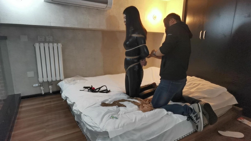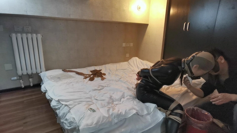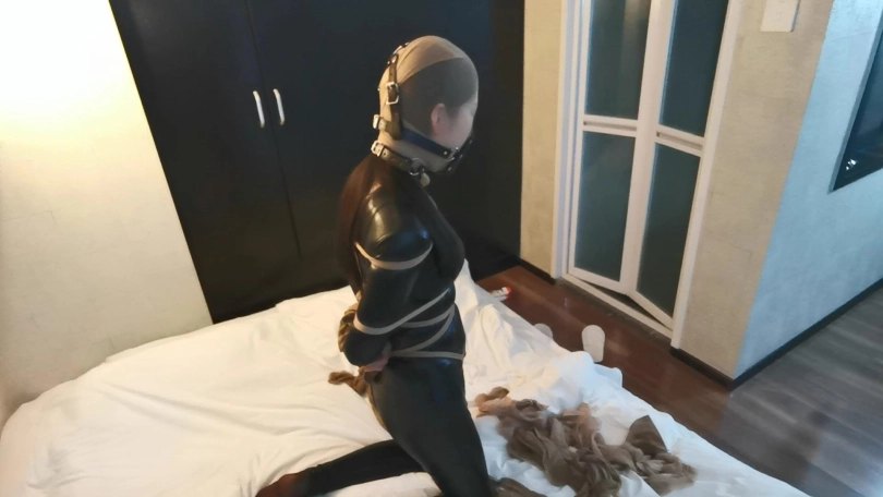 › 【JS】小冷-黑胶衣 马具口塞 丝袜捆绑套头 股绳刺激 玩足TK 口水直流