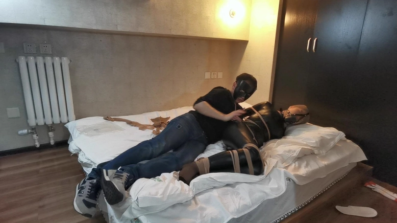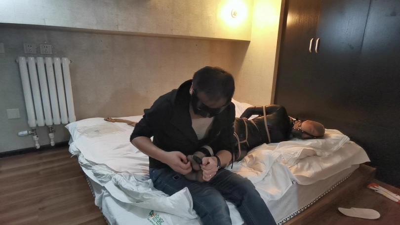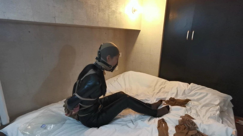 【JS】小冷-黑胶衣 马具口塞 丝袜捆绑套头 股绳刺激 玩足TK 口水直流