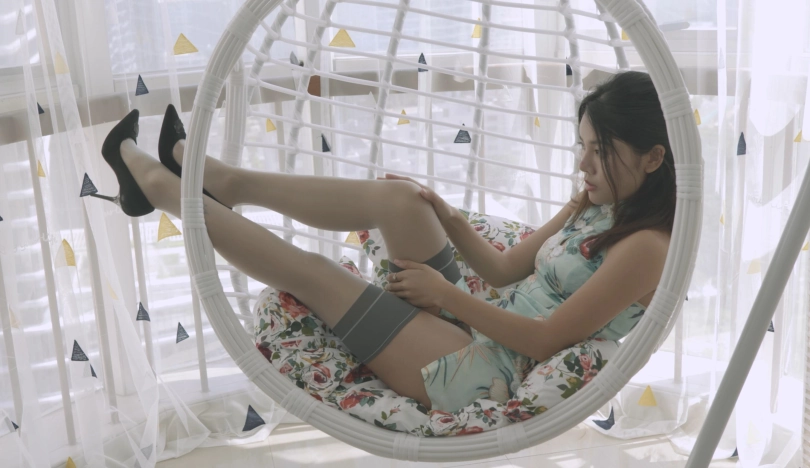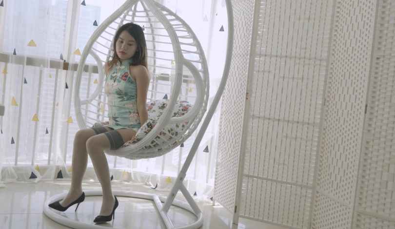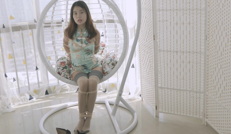 › 【4K映像】琪琪的夏日午后,摇篮,旗袍,长筒袜,高跟鞋,丝袜勒嘴,五花大绑。