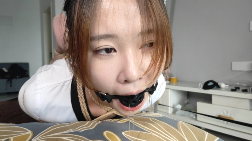 这是婉婉除了订拍版权视频之外的第二次拍摄,婉婉柔韧性还不错,腰好,驷马反弓起来送上GC。口球堵嘴口水不断,GC颤抖在绳子的束缚下着实诱人。