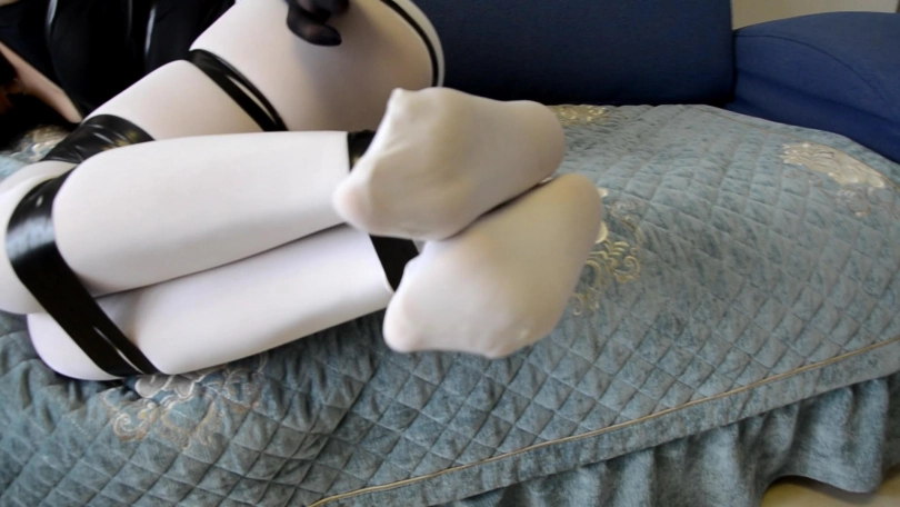 【逍遥】《密集白丝缚02》白丝裤袜和白丝长手套 套上白丝长筒袜包裹 黑丝手套固定捆绑艰难蠕动前行