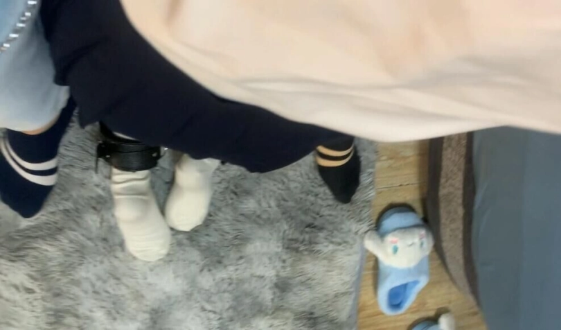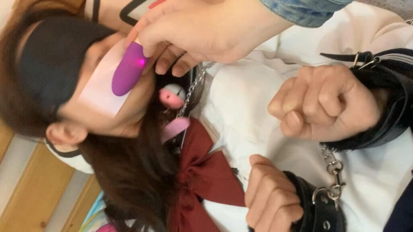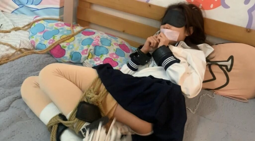 嘴巴里含着穿过的小袜子,再用胶带封住小嘴巴,