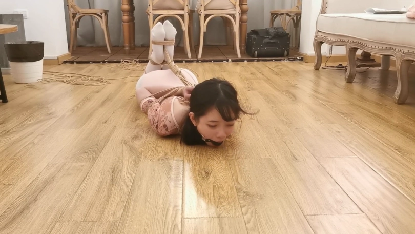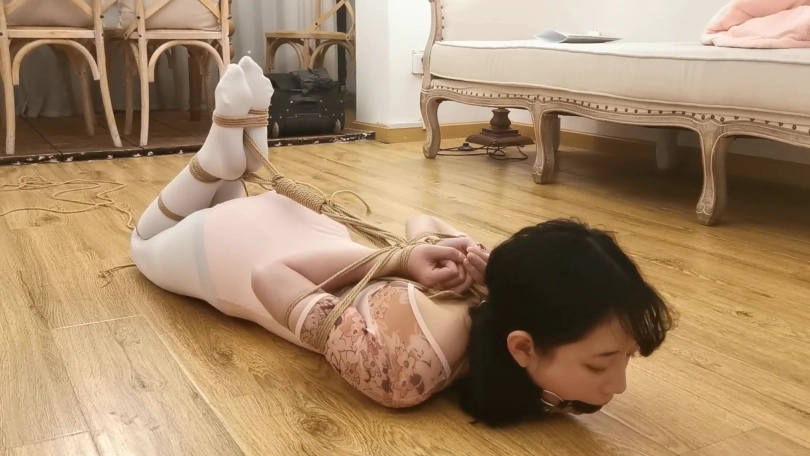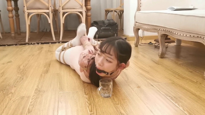 最近人气比较高的珊珊妹子,身材好有颜值穿什么都好看。两种绑法放置,欧式和后手观音驷马,完全动不了,带上口球只能由着口水往下滴。