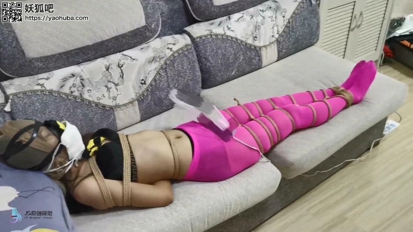 脱掉外套,只穿内衣,粉色连裤袜和棉袜。上身被日式捆绑,腿脚密集一圈圈的捆绑。不断的挠她的脚心,瑾萱还是很怕痒的。她的嘴里塞进丝袜,外面用胶布封住防止她吐出丝袜。再用一条肉色连裤袜套住她的头,外面用胶带缠绕固定。脱掉她脚上的棉袜放在她的鼻子处,在戴上口罩捂住口鼻,这样她每次呼吸都会闻到自己原味袜子的味道。她的下面被[不可描述]棒刺激着,瑾萱被这双重刺激折磨的不断呻吟。。。