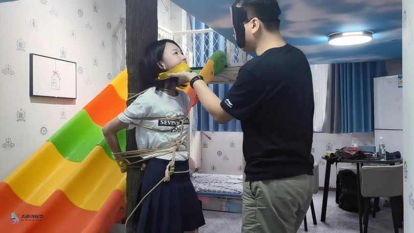 女孩租下了一间非常便宜的房子居住,但哪有那么走运的事情,这注定将会是女孩的一场噩梦之旅。就在女孩躺在床上睡觉后,房间里窜出很多条绳子奔向女孩,它们像是有生命一样缠绕着女孩的身体。当女孩醒来时惊恐的发现自己被多条绳子缠绕着。她挣脱束缚向门口跑去,但一条绳子缠绕着她的脖子向后拉去。当镜头再次亮起时,我们的主角“梦莎”已经被绳子紧紧的绑在柱子上,嘴巴也被胶带缠绕封堵着。原来一切都是房主的阴谋。他先利用非常优惠的价格诱骗单身女孩入住,然后用魔法绳子将女孩们束缚住,然后把她们贩卖给别人当奴隶。此时房主走了进来。。。