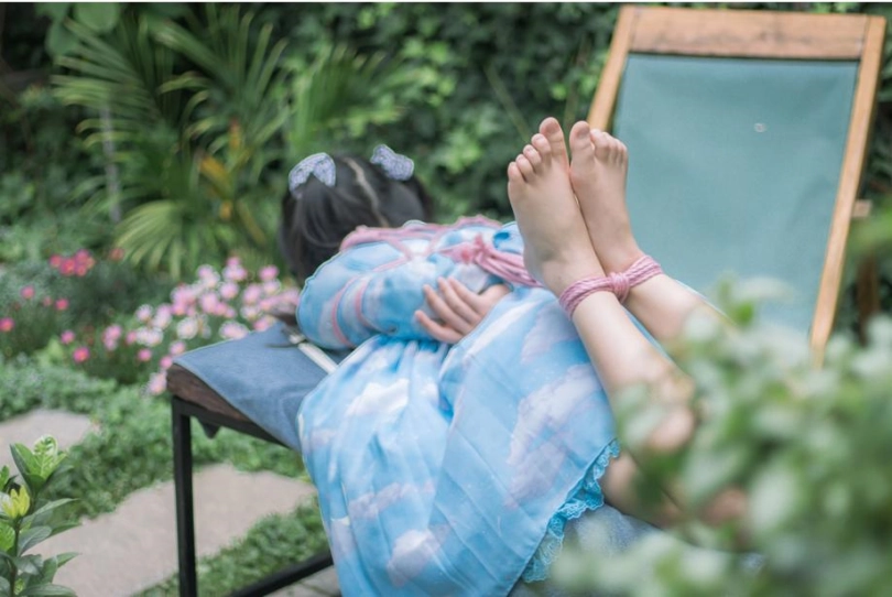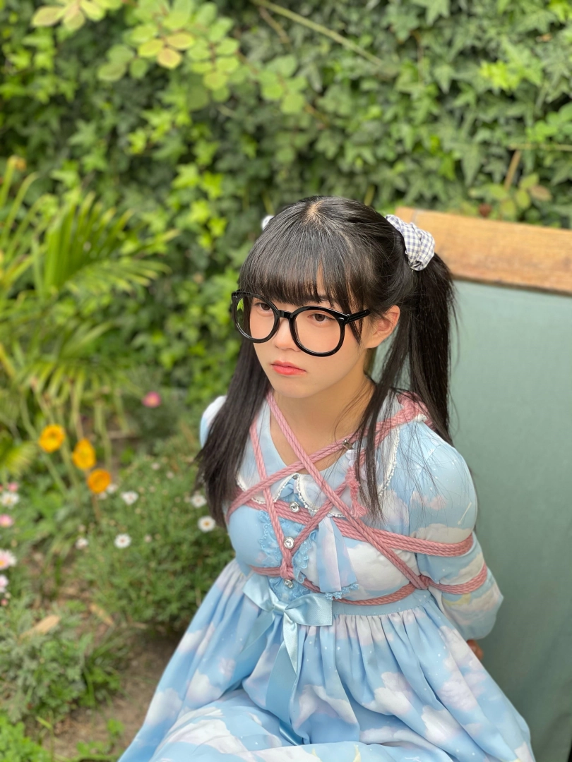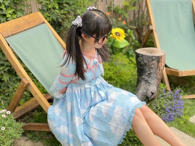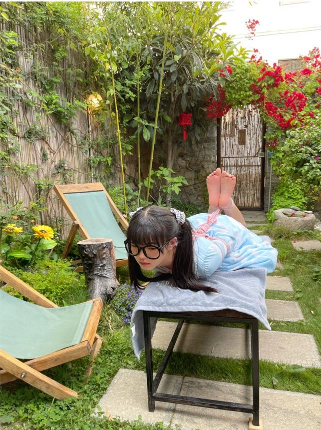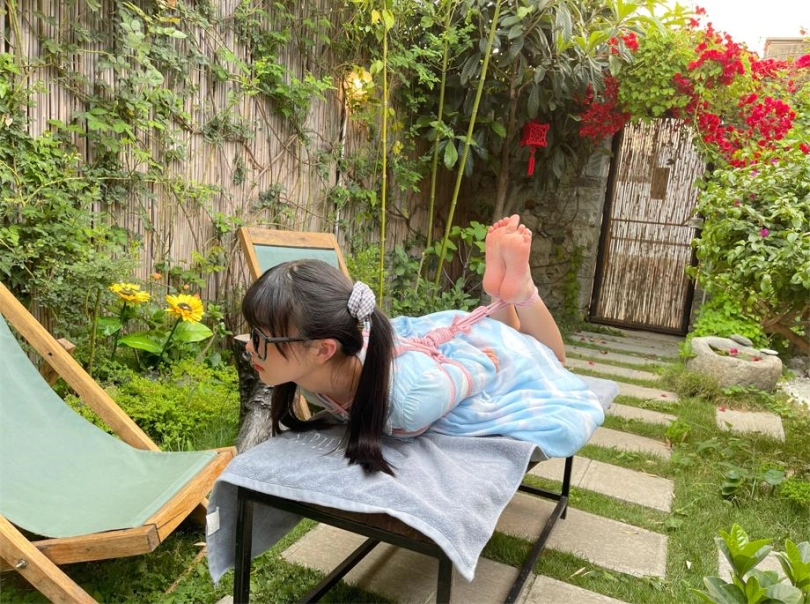 内容很简单,捆绑+户外放置(其实是花园小院啦),清脆的鸟鸣声,微微吹过的风,和如艺术品般被驷马放置的少女。在这种条件下心情都会变好。更何况少女被挠脚心银铃般的笑声也让人心旷神怡~当然,除了毛笔和手指等tk道具,我还用了电击拍。但是因为茶茶拍摄时不舒服,身体状态不好,所以只是浅尝辄止,并未用高档位电击。