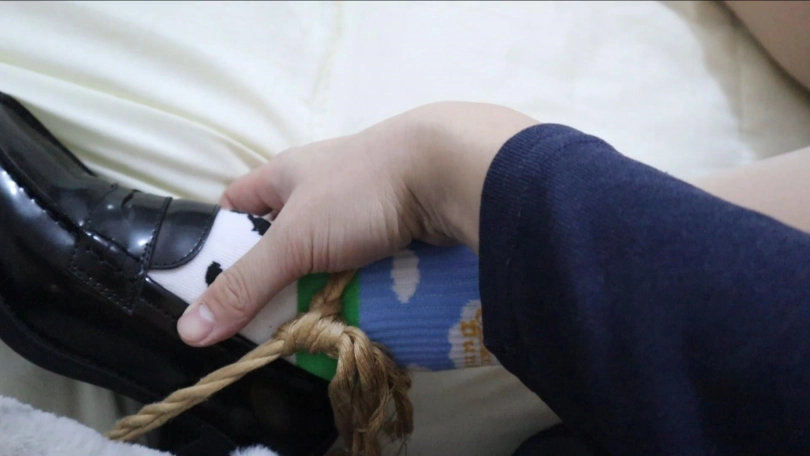 小皮鞋YYDS,慢慢脱下小皮鞋露出牛奶袜进行近距离抚摸与疯狂挠又加上各种道具在一起上然后再脱下牛奶袜,