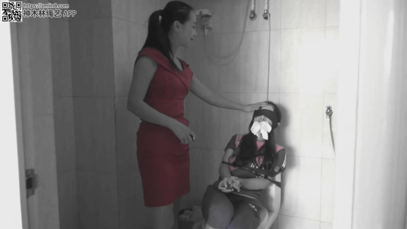 再把她绑到坐便器上。