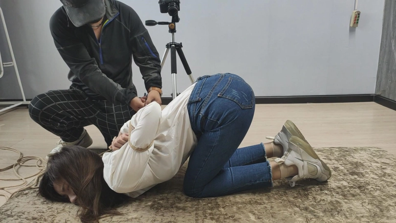 【美束映画】笑容甜美的妹子,柔韧性是真的棒,跪趴在地上捆起来,这次让她尝试一下紧缚的感觉。
