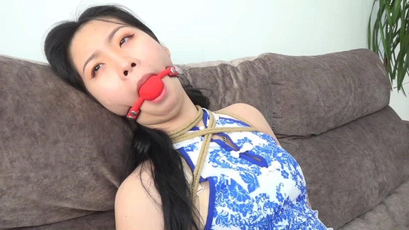 为了惩罚汪婷想跑,夏炎将其捆成驷马放置在沙发前地上,而后拿着一条崭新的紫色连裤丝袜在汪婷眼前晃晃说,看你家里值钱东西还挺多的,送你一双新袜子吧,不过你这手绑着也没法拿,我就放你嘴里吧,哈哈哈!