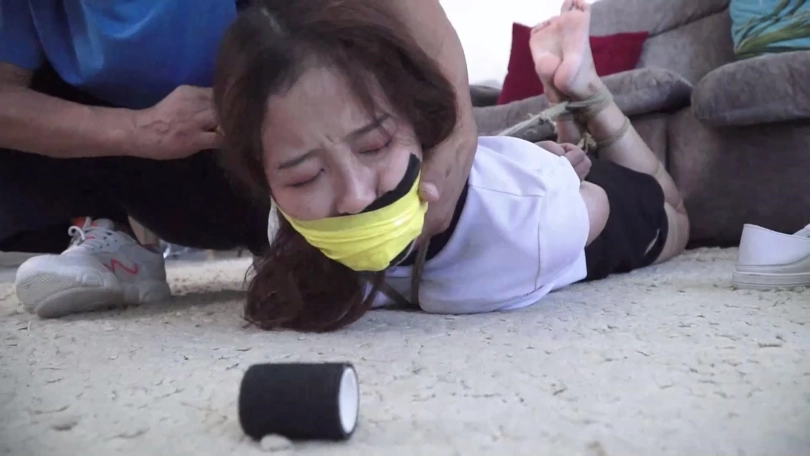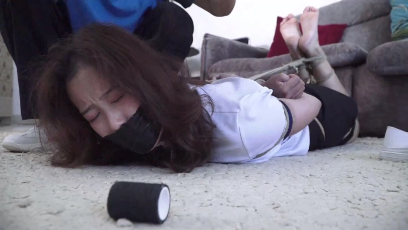 尽管亚男表示疑虑,但是家欣表示不就是几根破绳子吗,于是赶快让表哥拿绳索把她们捆起来,表哥照做了,家欣还说堵自己和亚男嘴就用自己脚上穿的原味白棉袜好了,一人一只,虽然穿了几天但是毕竟很快就挣脱开了,忍一忍就没事了,闺蜜亚男也同意了。于是锁哥脱掉表妹家欣脚上鞋子和两只白色棉袜,一只只分别塞入家欣和亚男口中,而后自己到屋内休息,表示二人如果挣脱开拽出嘴里东西喊自己就过来。