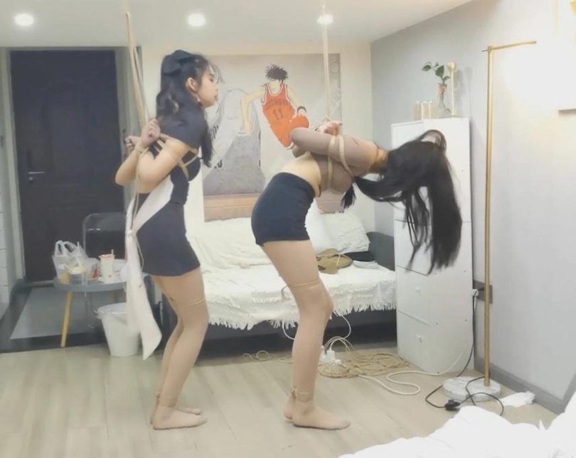 捆绑放置逃脱是每个新妹子都要尝试的桥段。既然是两个妹子,那就尝试个新绑法呗~~~
