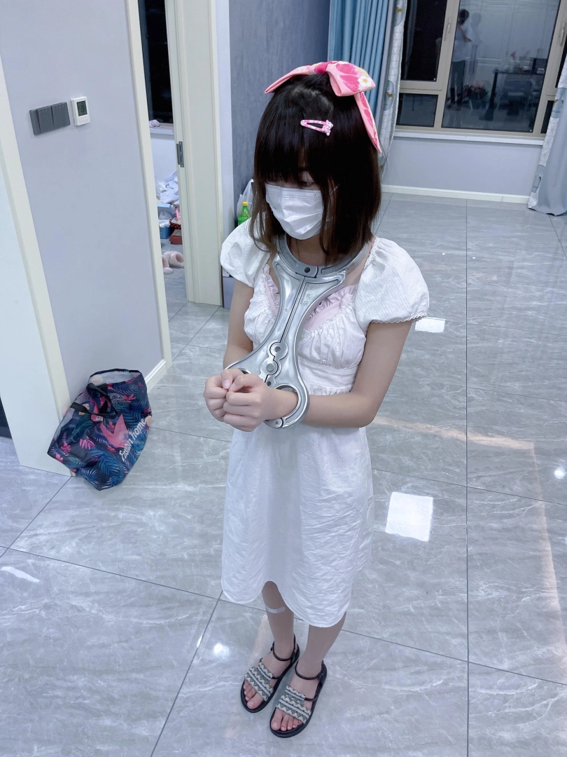 随后勒令茶茶下跪,茶茶应声跪下。为女囚茶茶解下手铐,换上冰冷沉重的重度拘束具——人字枷。
