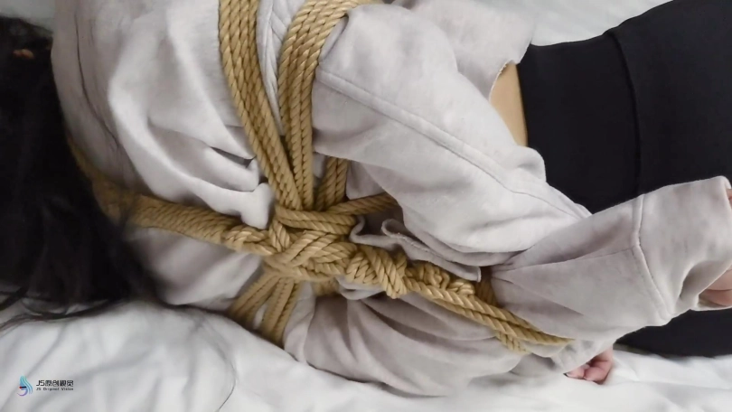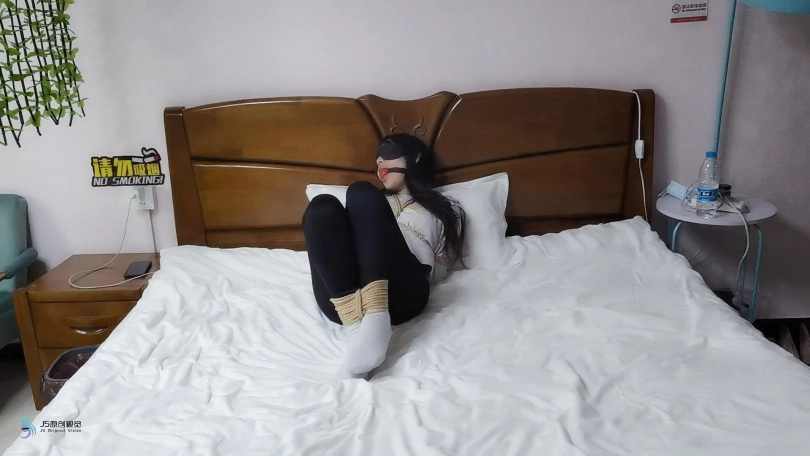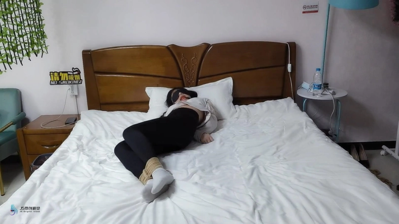 女孩下班回家,她在床上玩了会手机,很快就睡了过去。这时劫匪开门进入房间并劫持了女孩。把女孩紧紧的捆绑起来,寻找财物。独居女孩一定要把门锁好,不然。。。