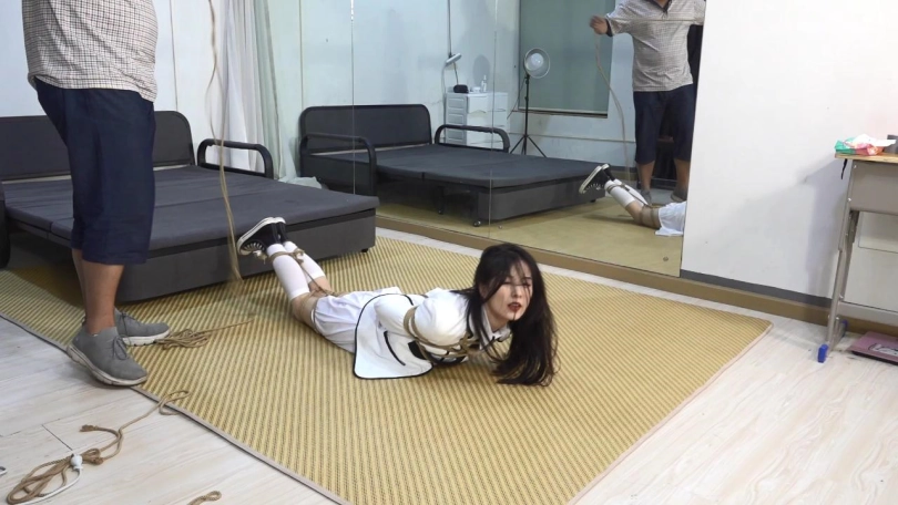 小胡照做,富豪拿出手铐将小胡的双手铐住,然后推搡进了屋内,一进屋内,便一把将小胡推搡到地上。
