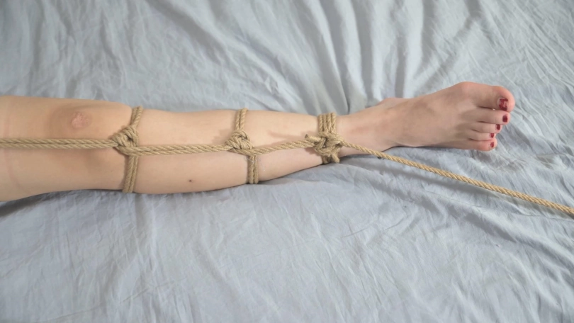 尝试了两个比较新颖的抱腿绑法,最后的跪缚固定缚,还出了一个比较有趣的小事故,绳师正玩TK玩得起劲,没想到汤圆反应这么大,猛地一台头,就听彭的一声!