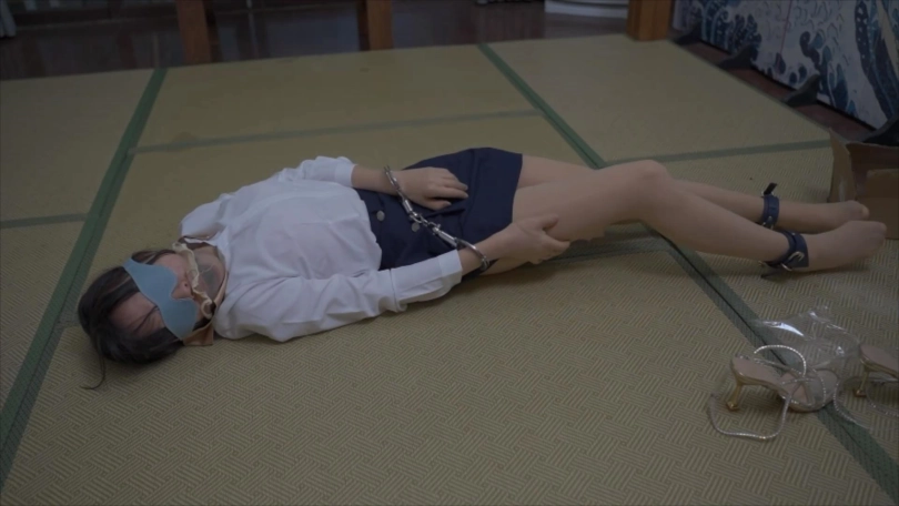 结果遇到了陌生人,给她解开以后逼迫她穿上新的一层连体丝袜,