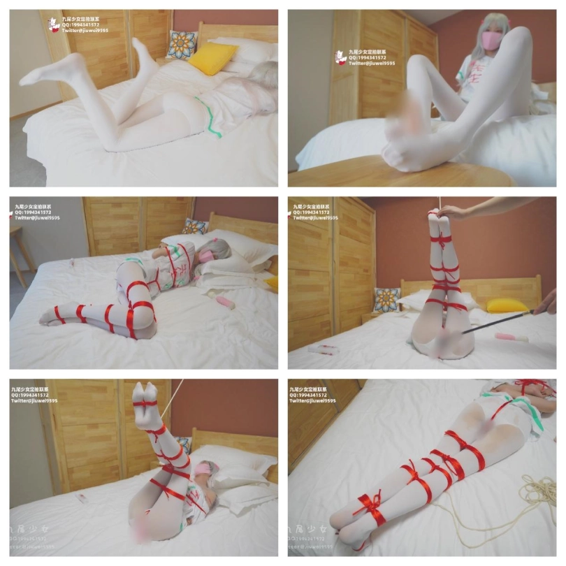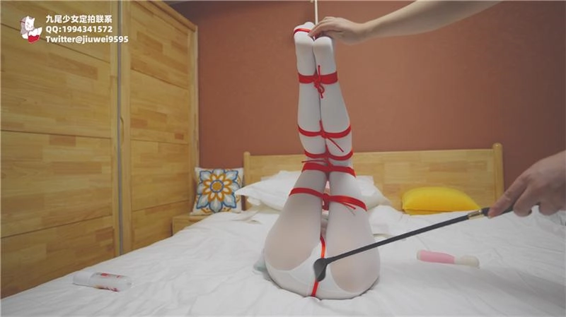› 【九尾少女】COS埃罗芒老师,调皮玩弄[X_X],手足并用,白丝红绳的全身紧缚+多层捆腿+强制GC,捆绑吊腿下面快乐棒刺激+鞭打GC