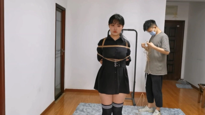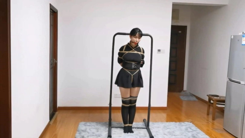 有点微胖的妹子清秋的日式股绳直立吊,然后独自放置一个半小时,清秋对口球十分敏感,戴上大口球流了不少口水,还被口球噎的一个人大喊大叫,最后看她的表情是用尽全身的力气也想把口球给顶出来。
