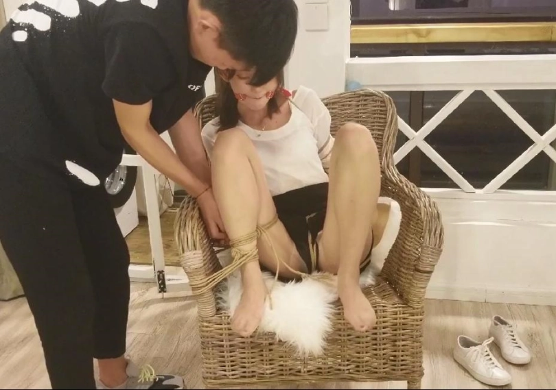 接着再将她五花大绑,双腿绑成M开腿缚,这下她没办法了,戴着口球也合不上嘴,挣扎也没有效果,还要被挠痒痒...