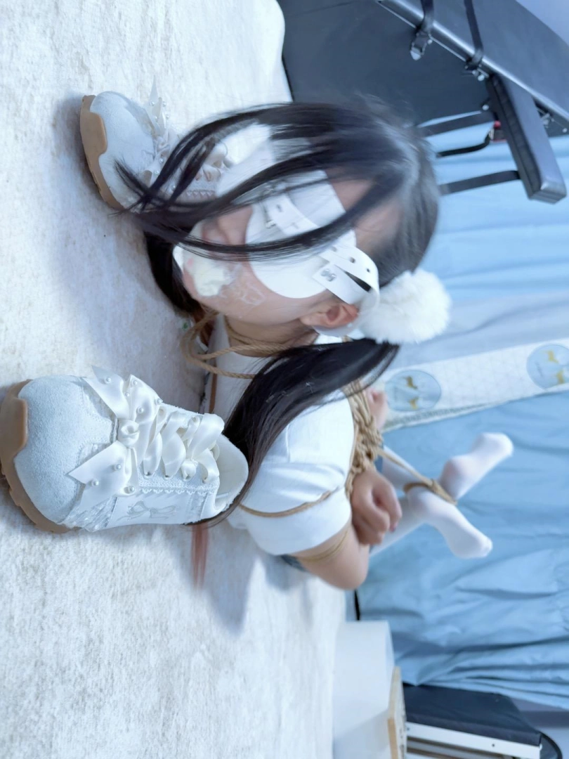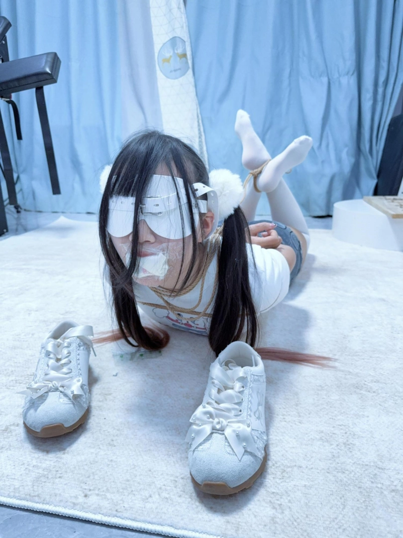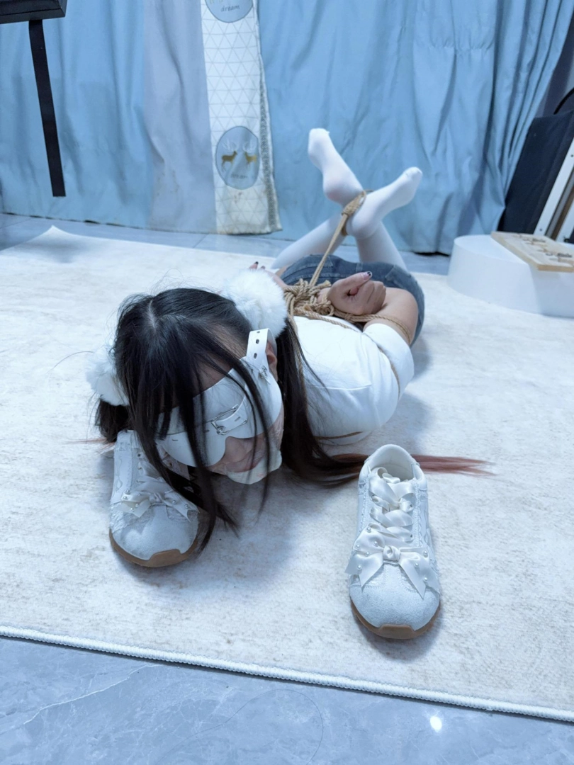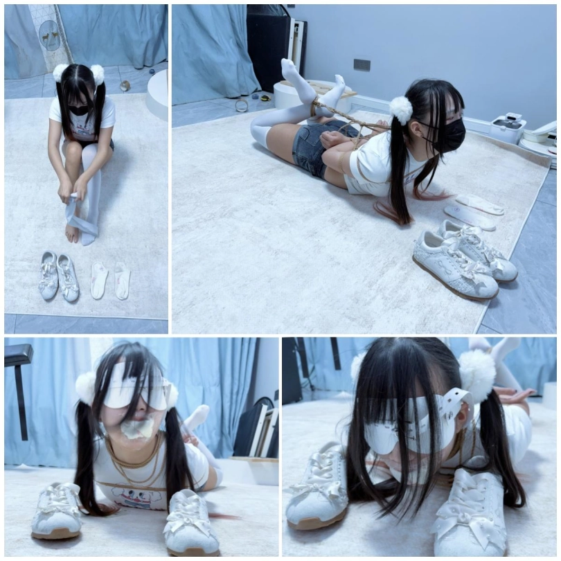 后面妹子坐立难安,还想尝试自己解开,但只能解开松一点点,完全没有任何脱缚可能~