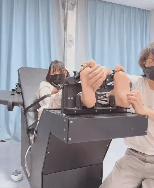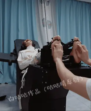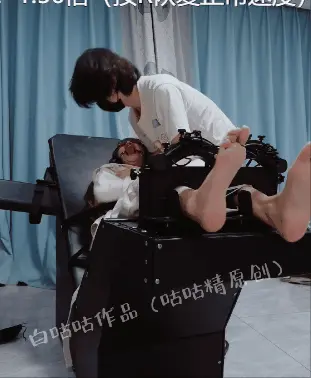 最后给模特挠崩溃了,拼命摇头扭动挣扎,双脚使劲在被锁住的足枷里踹,哪怕脚腕受伤也不管不顾,痛苦哭泣尖叫,音量超级大,超级痛苦!!!但是百斤以上的重刑床+拘束衣完全让妹子无法逃脱!!!