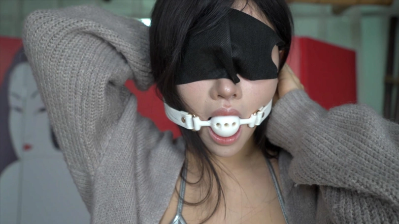 › 【象人】小0-银色比基尼内衣长靴套装,伪一字马单腿吊缚+直臂并肘驷马!