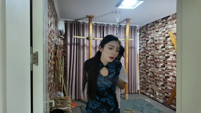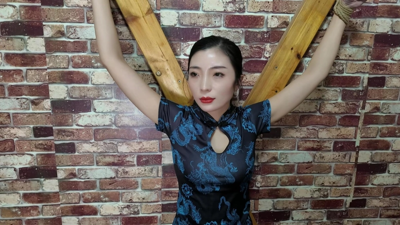 林婷接到线报,前往歹徒秘密据点营救,不料被早已埋伏在门口的打手给抓获,打手知道林婷身手好,五花大绑不放心,又加上了脚镣,相见老大需要过刑讯关,老虎凳,吊,X架,大字捆绑,鞭打,几关下来把林婷折磨的奄奄一息,这还不算完,最后又被关到笼子里面,等候老大回来处置。