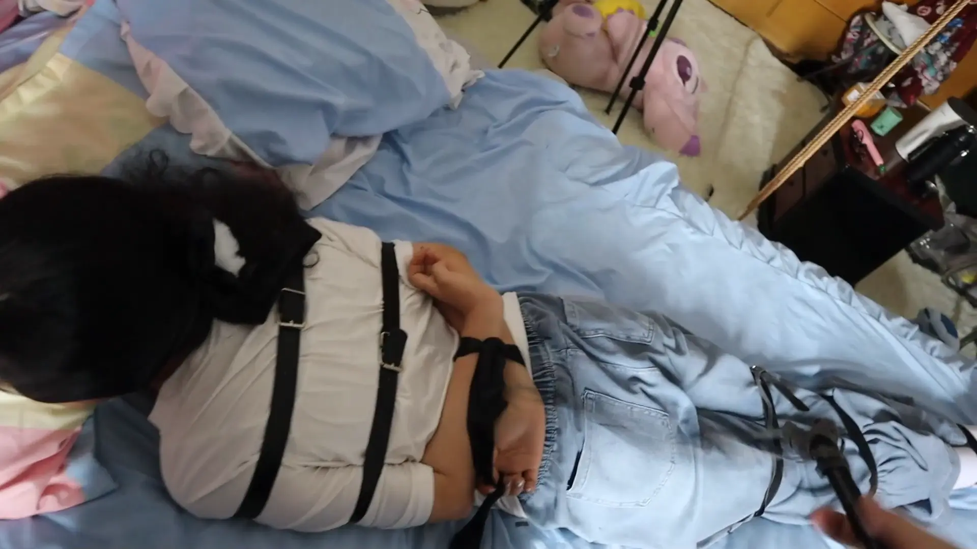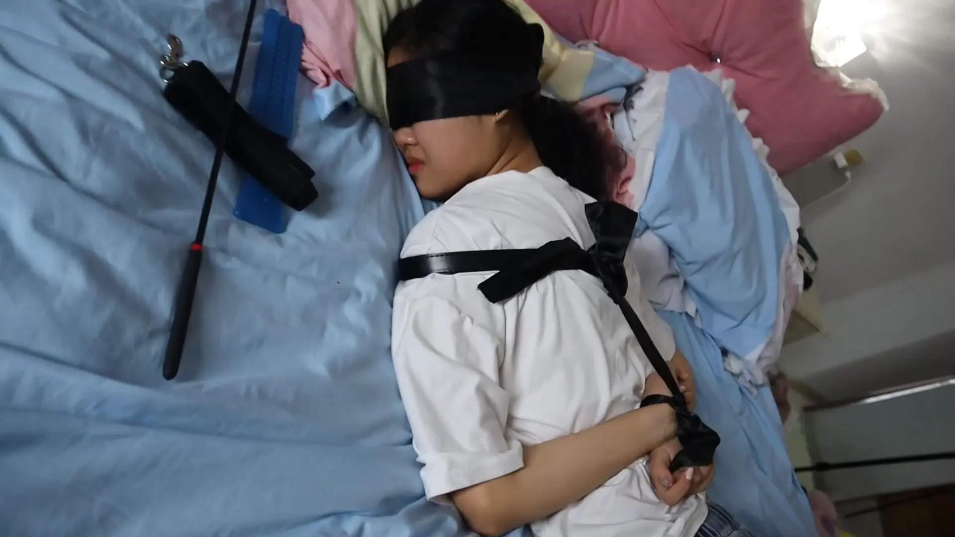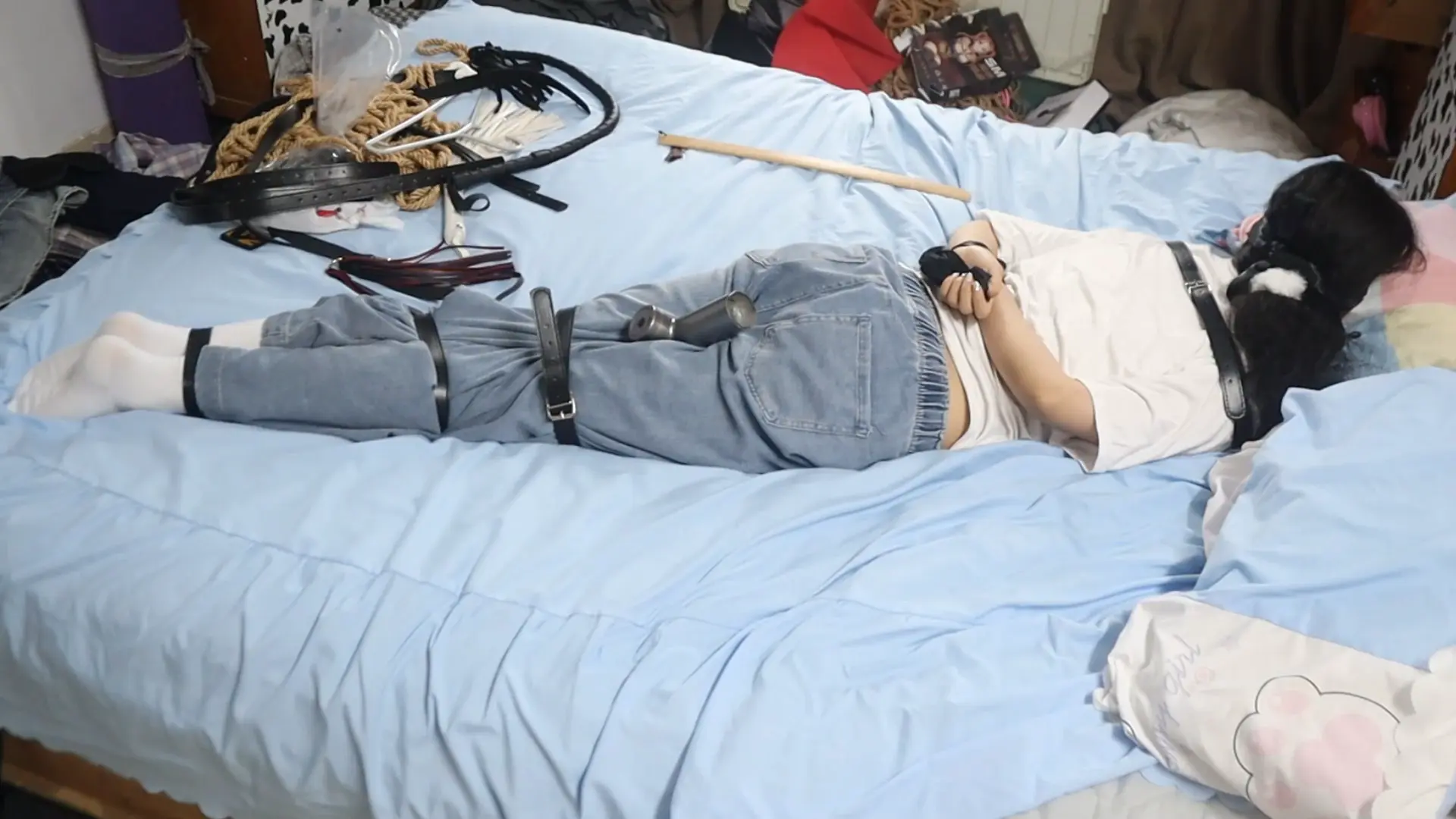 › 【荷仙少女】线下真实调教高挑白袜牛仔裤素人女孩小心翼翼来接受男主调教,一进门就见到几十种鞭子sp害怕又兴奋,皮带绑好身体手脚,纯记录双视,鞭打到后面痛苦挣扎直接大声哭泣喊道便报数边喊谢谢主人