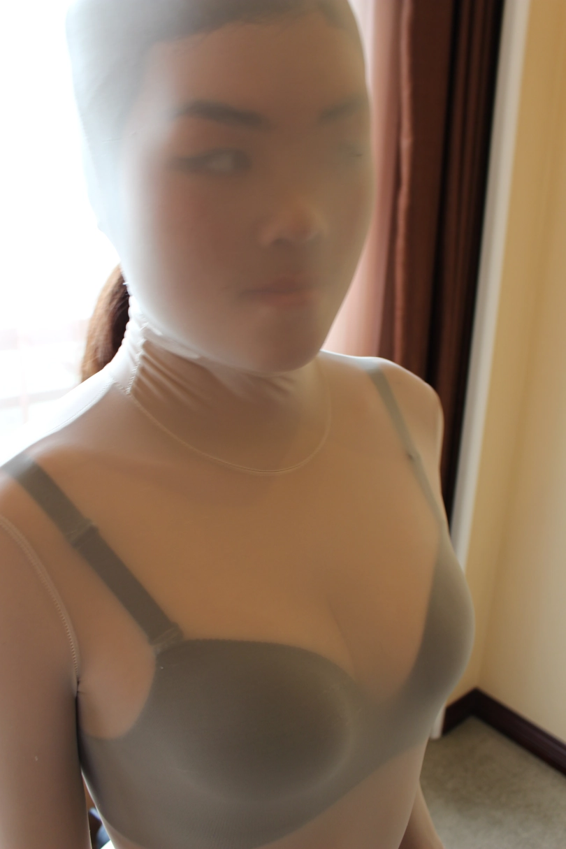 作为职业模特的Susan很会摆姿势,当脱掉外面的全包时候透过打底肉色全包里朦胧的脸在阳光的映照下十分性感。