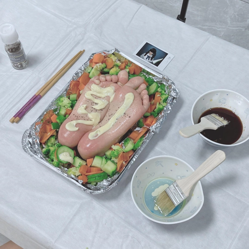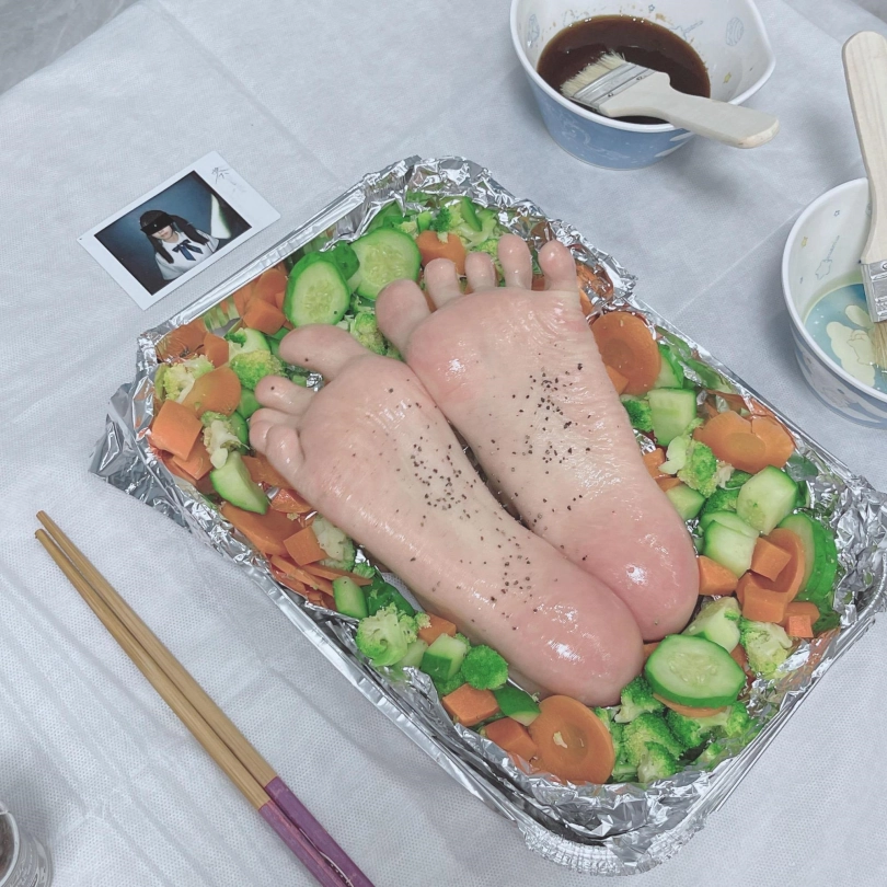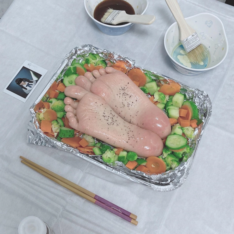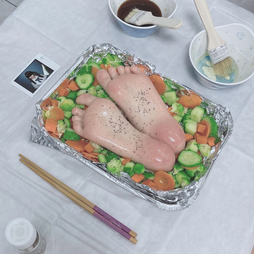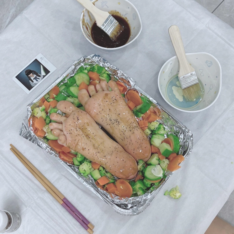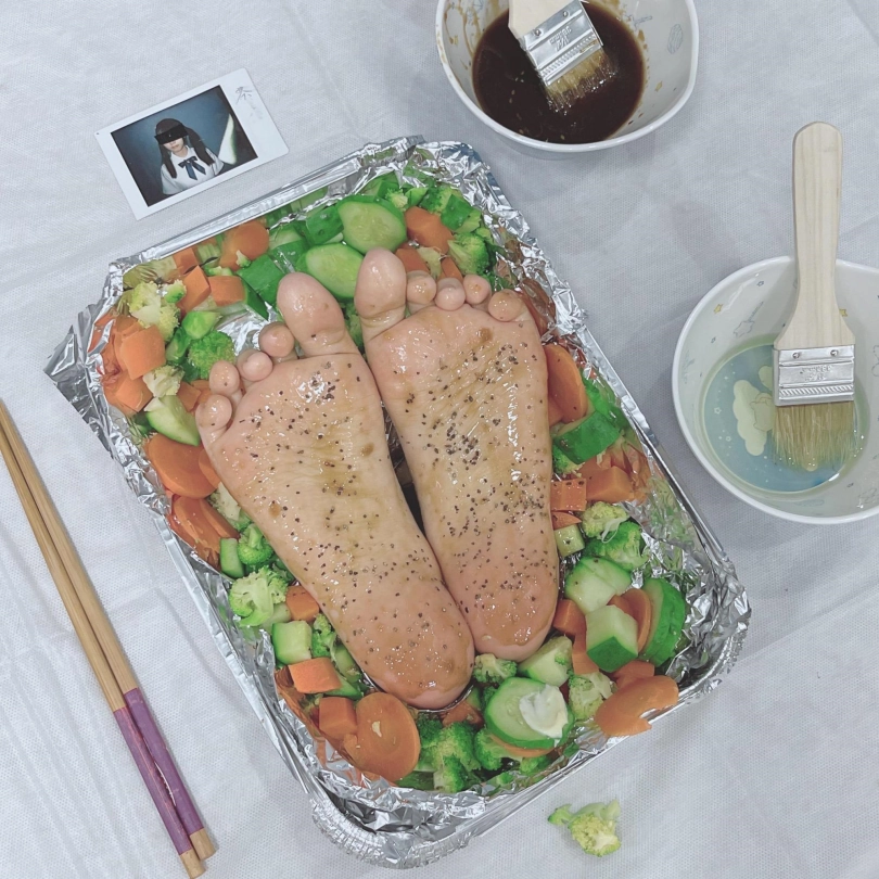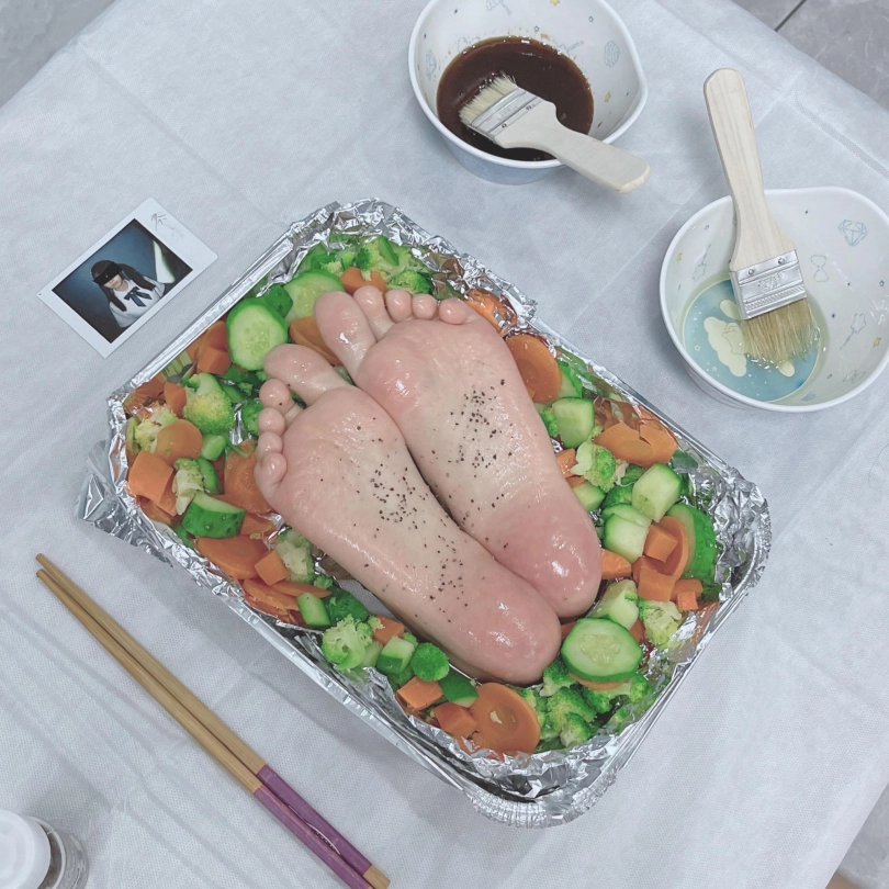 为了保证最棒的用餐体验,本店采用最新的保险技术,顾客您看,这双足底是鲜活的哦(戳),无论你做什么 ,足底的主人都会100%感受到呢!