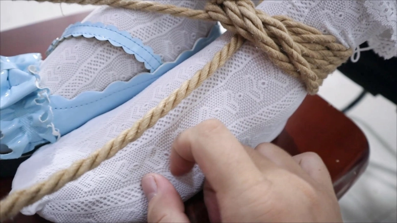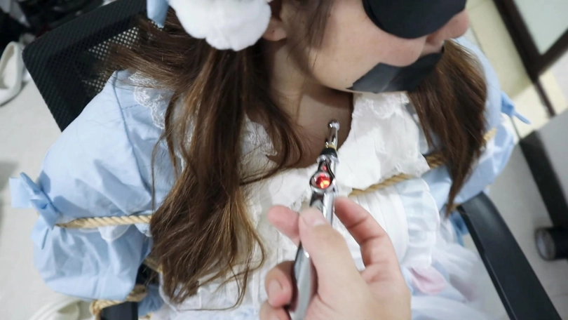 玥一直挣扎想要摆脱哥哥乱摸的坏手,但是身体又被紧紧的绑起来,嘴巴也被封上,只能不断地挣扎,呜呜呜(快放开我),之后哥哥拿出了小玩具,呜呜呜呜呜!不要