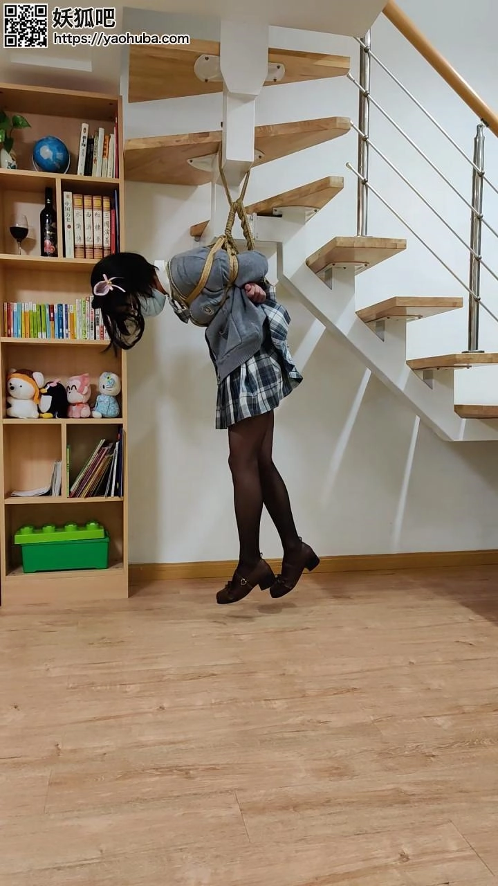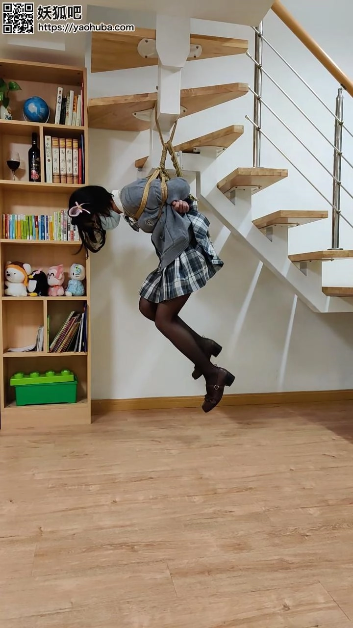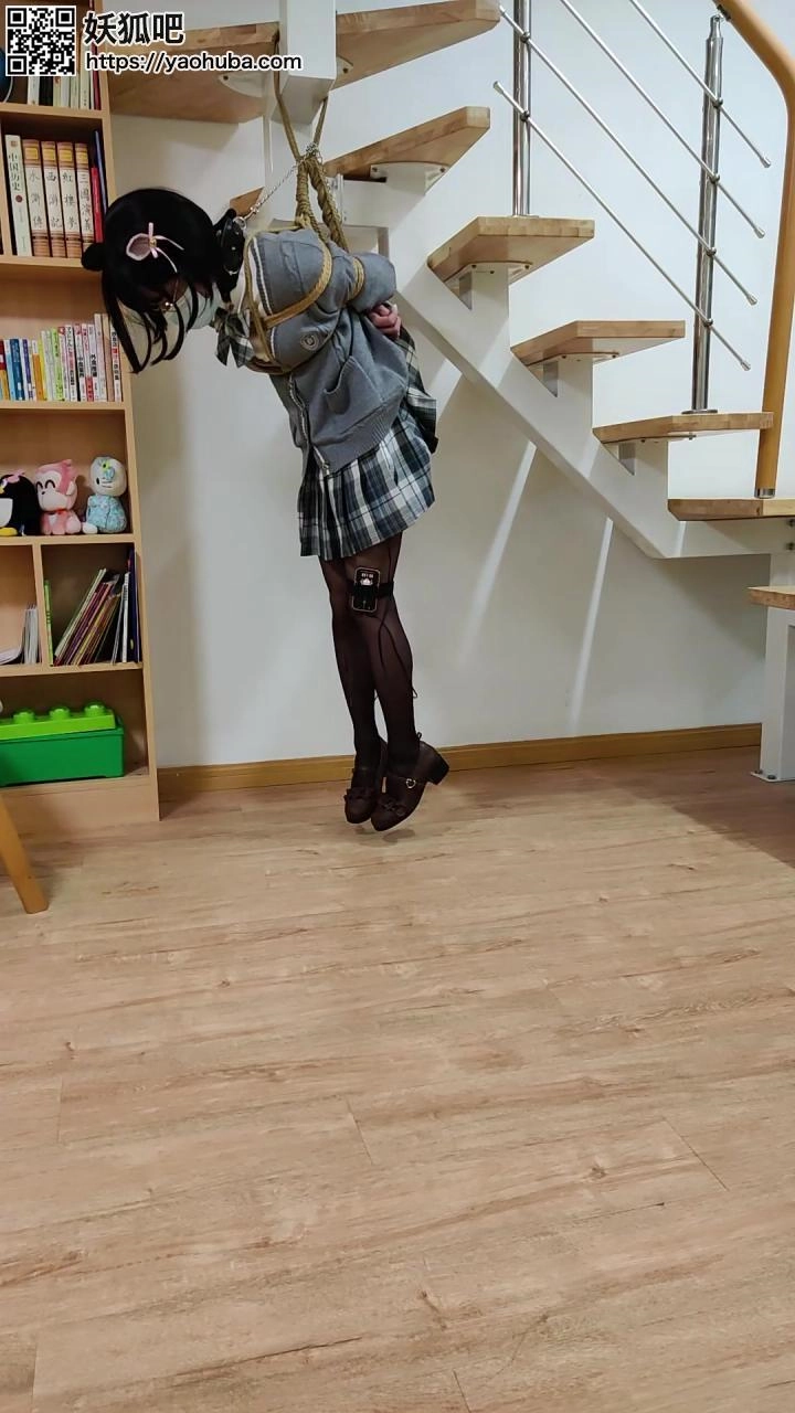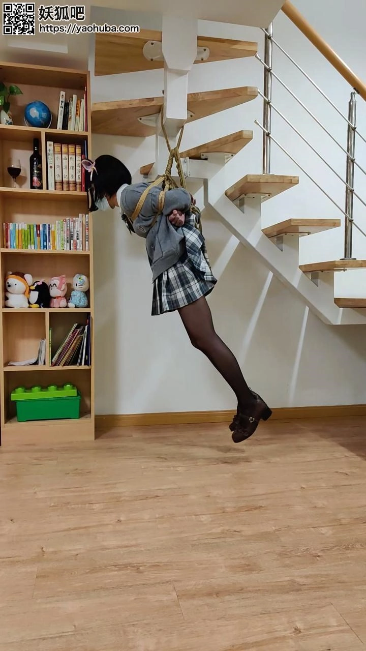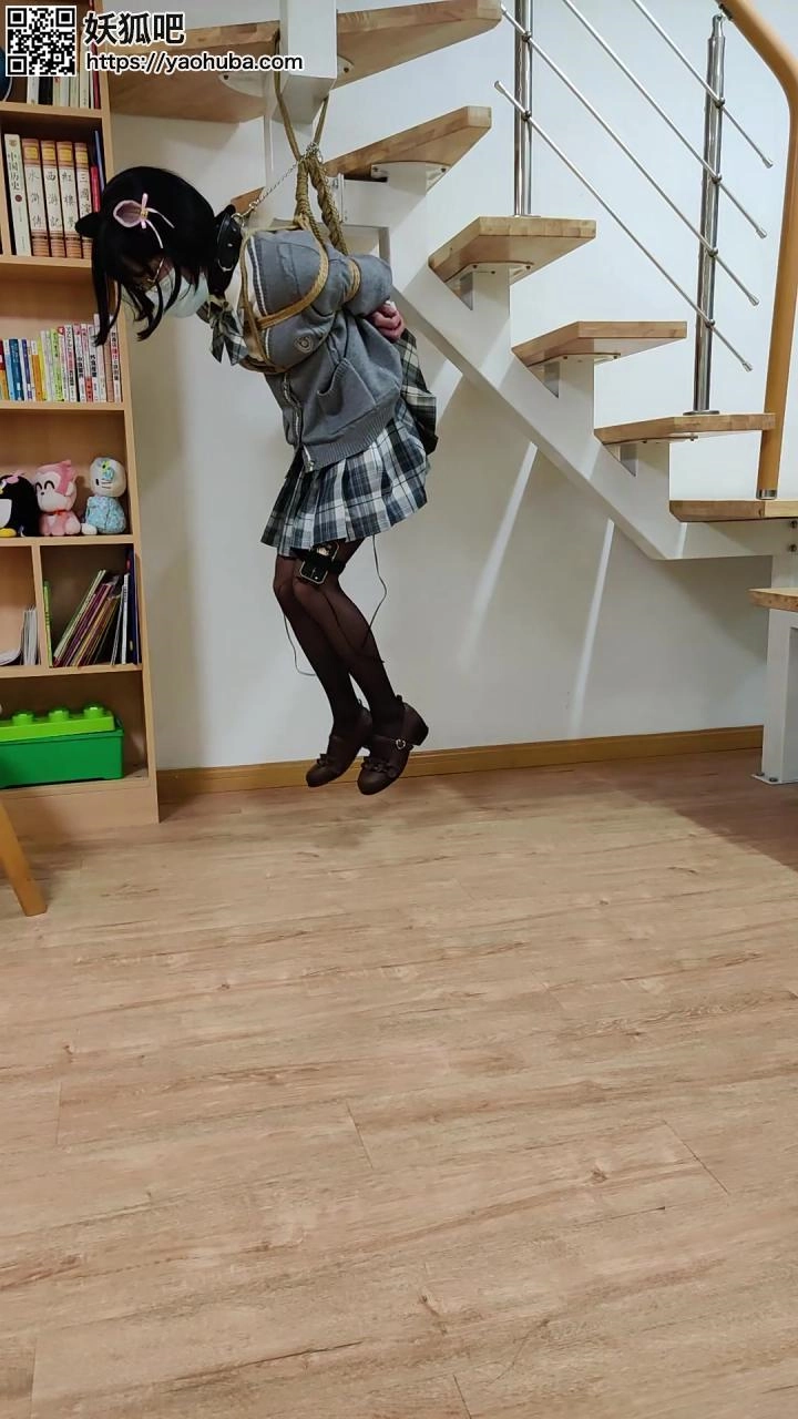 这次是黑丝JK悬吊~前半段是单纯悬吊,后半段是电击~