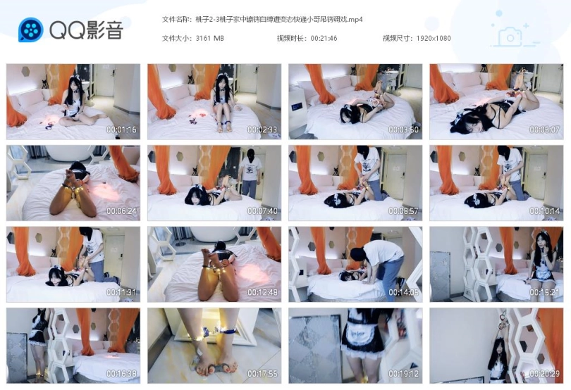 关键词:桃子 家中镣铐自缚 遭变态快递小哥 吊铐调戏 TK 手铐 脚铐 脚趾铐 女佣装 板鞋 棉袜 口球