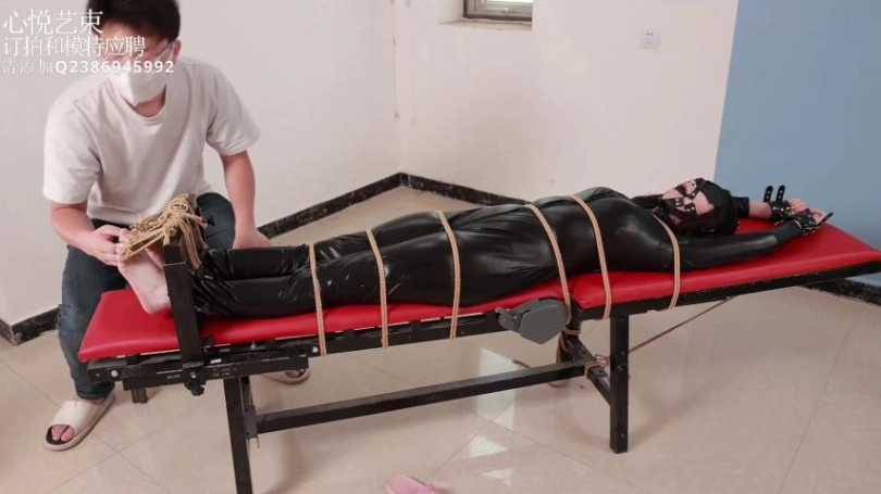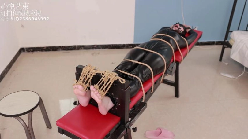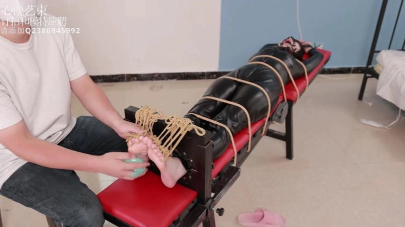 › 【心悦艺束】足控福利,皮革女王老虎凳完全拘束。脚趾全绑,马具口球。绝命TK。