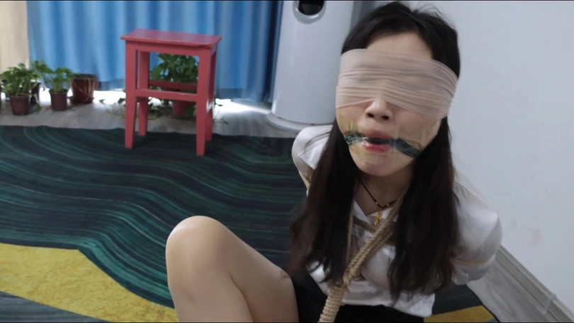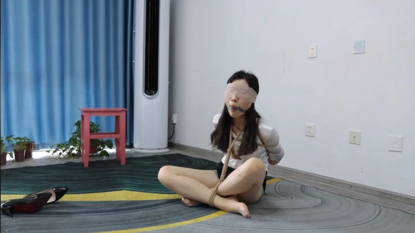 面对恩可的求饶小哥不为所动:“算你识相,我就饶你一命,但钱没到手我可不能放了你,你还得好好地呆在这。不知道口球的感觉你有没有尝过呢。”小哥一脸坏笑地将黑色口球进恩可嘴里,随后用透明胶带封住恩可的嘴巴,并用另一条丝袜蒙住恩可的眼睛,在确认恩可身上的绳子很紧之后便出门取钱了,只留下恩可一个人在房间里艰难挣扎。