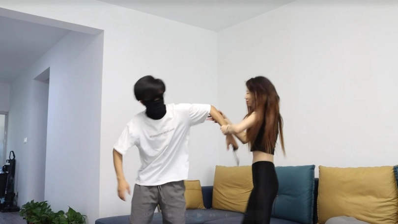 意涵很自信,说这对她来说不是问题,可以随心所欲地把她绑起来。于是,学生先用绳子把意涵简单束缚起来。意涵一边解释应该如何脱逃绳索的束缚,一边挣扎。几分钟后,意涵解开了绳子。这让学生大吃一惊。然而,学生依旧不服气,要求再一次挑战意涵。意涵为了让学生心服口服,欣然接受。