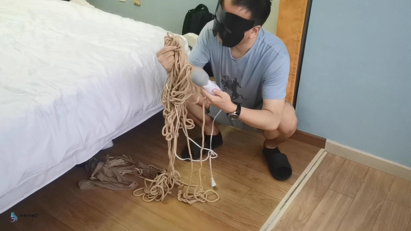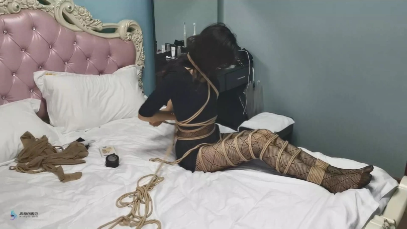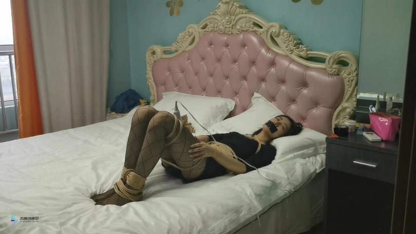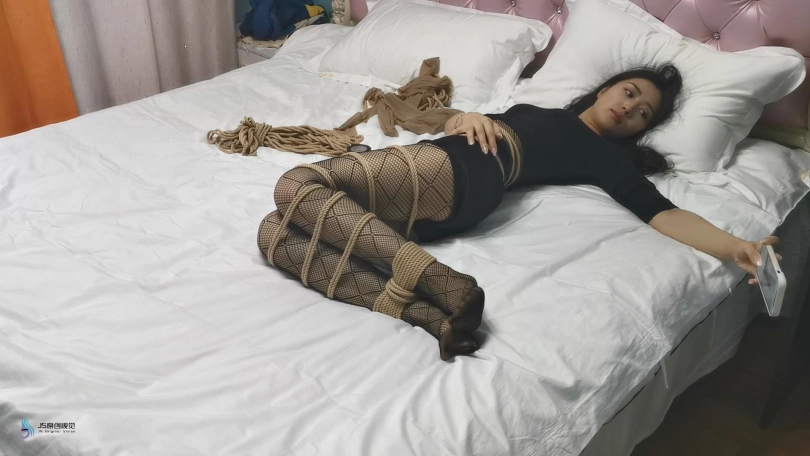 艾可独自一人在家无聊,决定玩点刺激的游戏。没错,艾可有一个不为人知的癖好,就是喜欢被捆绑。她从抽屉里拿出了绳子,快乐棒,丝袜,胶带等物品。她用绳子先将自己的双脚捆绑起来,然后将自己的双腿一圈一圈的绑好。然后用更多的绳子将她的身体捆绑起来,再用胶带封住自己的嘴巴。完成捆绑后,她还开心的拿出手机给自己拍照。接着她插上快乐棒的电源并打开开关。拿着棒子不断的在自己身上游走。再触碰到自己下面敏感的地方时她闷哼了一声,并停止了移动棒。不断传来的强烈[X_X],让她一只呻吟并扭动着身体,她的另一只手也不停的抚摸着自己的胸部。