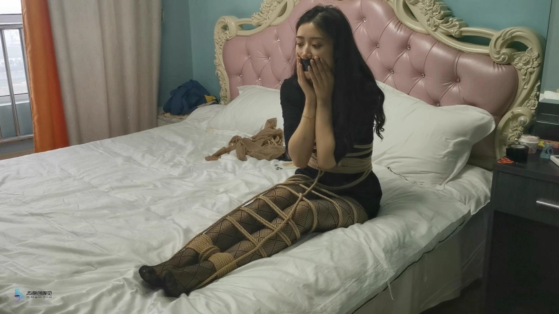 没过多久修理工告诉艾可暖气已经修好。就在艾可上前准备查看时,男人从后面将她扑到再床上,并将其掐晕。男人用绳子将艾可捆绑起来,往艾可的嘴里塞进一双丝袜,并用胶带封堵住。当艾可再次醒来时发现自己被捆绑起来,她惊慌的呜呜叫着,挣扎着。但她不知道,好戏还在后面。。。