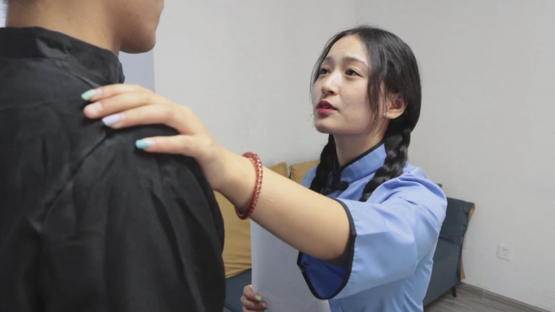 群演小伙显然有些害羞:我就是一个小群演,哪敢教彤姐这种大明星演戏啊?