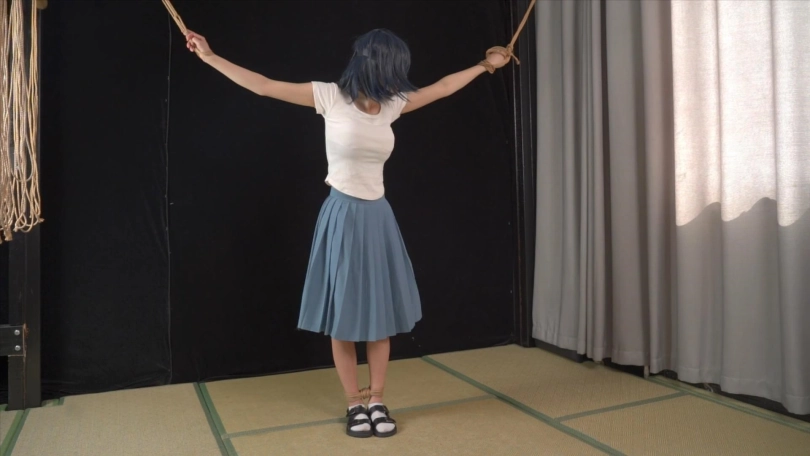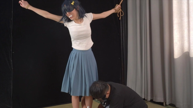 › 【象人】嗷嗷-蓝色长裙,白袜凉鞋,大字型捆绑TK,袜子塞嘴,td震脚底