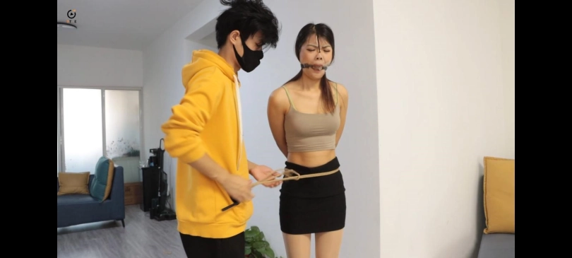 佳怡因为疫情原因把工作辞了,积蓄花的差不多了在网上漫不经心的找着工作,突然看到一个招聘模特的工作,工资很高还是日结,很快便联系上工作室,订了个面试的日子。面试当天佳怡穿的非常好看,来到工作室,男主给她开门:是来面试的吧进来吧,男主打量着她,心里想真好看又来一个送上门的,我去准备一会面试的工作,但是却偷摸拿出刀来,走到她身后架到她脖子上,佳怡大声说到:你要干什么,这是犯罪行为你个混蛋放开我。男主:不要动,是不是不想活了,再叫就杀了你,佳怡很害怕便不再说话慢慢平静下来,随后被男主拿出胶带将她手包裹成拳头状,被男主用丝袜堵嘴并戴上口环外面贴上透明胶带。又戴上了鼻钩。股绳绑上项圈牵引跪地爬行,(期间佳怡要演出一直说话却听不清的这种感觉来)。男主:不老实还叫唤,说着男主拉快股绳让她跪地行走,拉一次佳怡便叫一下,最后佳怡筋疲力竭()。接下来就是耻辱的吊缚了如图一,戴上马具口球和鼻钩,挠全身挠痒(小刷子和齿轮全身挠痒)和情趣鞭子打屁股,这段持续十分钟左右。佳怡期间要时不时呜呜的说话。随后男主觉得不过瘾,取下口球,将她穿过的原味黑色丝袜拿出来,这是你穿了好几天的丝袜,佳怡很抗拒,一直说不要,求求你不要啊好恶心啊,男主不理她,直接塞入她的嘴里,并拿来他穿过肉色丝袜,缠绕一圈袜尖摆到她鼻子的位置,一呼吸就能闻你的袜子的味道佳怡觉得很恶心”但是也无法抵抗,只能享受她的臭袜子不停地叫,再贴上透明胶带。随后继续挠痒鞭打。佳怡慢慢的坚持不住了,男主看到就给她解开放松一下,但是还是不决定放过她,换上兔女郎的衣服准备把她卖掉。如图二蟹腿缚,绑好后男主觉得她很性感,继续抚摸挠痒鞭打她的全身,佳怡一直挣扎求饶:你想要什么我都可以给你放了我吧,放了你,我怎么挣钱啊。佳怡大声叫救命,男主打了她一巴掌,让你叫。拿来两双丝袜塞满她的嘴巴,接着用橙色绷带缠绕住,再缠绕上粉色静电胶带,佳怡只能呜呜呜的叫和一直挣扎,男主还觉得不过瘾,用笔给她嘴上写上肉货二字,接着用银色胶带把眼睛缠了几圈,拿出耳塞堵住耳朵,让她无法听见声音,又拿出鼻钩给她戴上。完成后就开始挠她的脚心,佳怡只能一直笑和一直挣扎,玩够了便把她脚趾并拢绑在一起,随后放置在这让她自己挣扎,佳怡慢慢的没有力气,昏了过去完结。