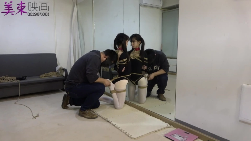 珊珊来到工作室接受捆绑测试,首先先被后手吊起,项圈连接到将两腿岔开的木棍上,被戴上马具口球,头发也被向后拉起,整个姿势非常难受,珊珊勉强坚持了15分钟。休息了一小会之后,珊珊又被绑起来,双腿折叠捆绑被提起来行走,坚持走了10分钟后已经气喘吁吁(中间还摔了一跤)。最后珊珊四肢都被折叠捆绑,像小狗一样在地上爬,爬累了后又被拉着股绳吊起,只能默默煎熬。