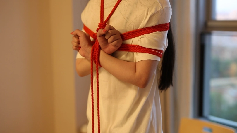 肉丝妹子初体验,日式绑上之后想要挣脱为时已晚,后强制驷马放置原地挣扎未果。。。。。饲育养成。。。。竟然自己给自己上铐。。。。