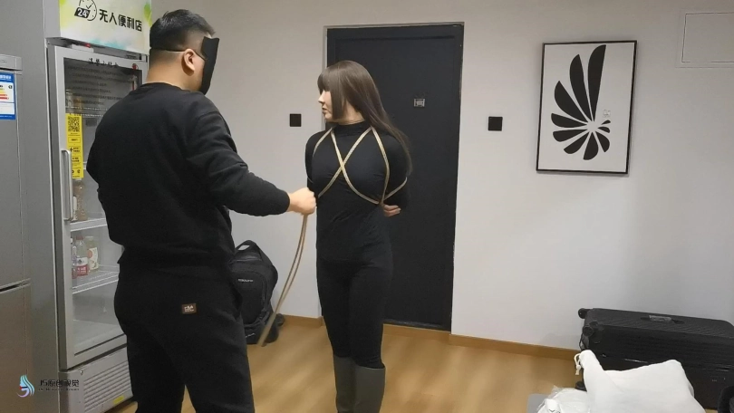 【JS】【艾菲】女努训练游戏黑衣长靴紧缚口球堵嘴墙纸高超