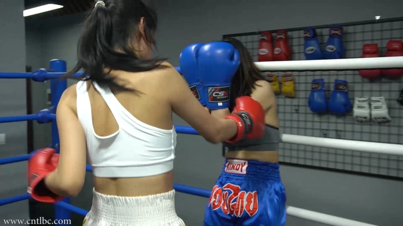 Ruona and Qiqi were playing a Thai boxing match. There was no warm-up, no friendly touch. They all look confident. The fight was fierce at the beginning. With the consumption of their physical strength, who can persist to the end?