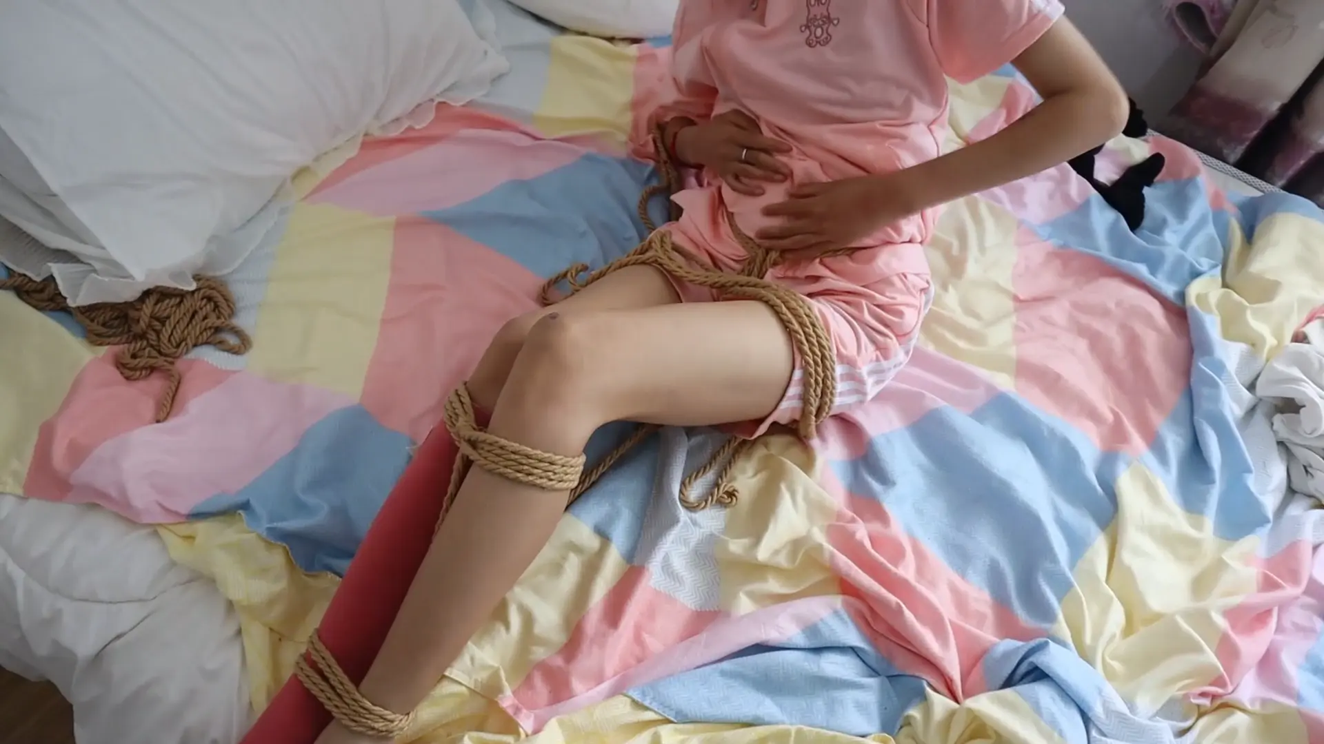 【荷约少女】感冒短发清纯萝莉挣脱记,少女B(本本)个子不高腿倒是挺长,但天生反骨,睡着的时候被绑起来了被捆成什么样子都不服,被脱下粉色袜子玩裸足,一被碰到就嗯嗯嗯的叫,一边被摸着玩一边用清纯的翻着虚弱