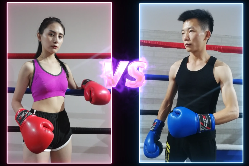 Ting fund Chuan and wanted to avenge her sister. Chuan didn‘t want to fight her. But Ting pressed him again and again. He had to agree. Ting has confidence in herself. Because of his absent mindedness, Chuan was beaten badly by her at the beginning. You can clearly see that Chuan got the real punches on his face.Chuan was infuriated...