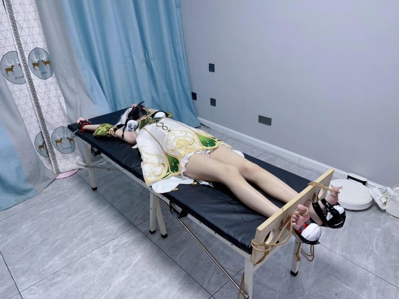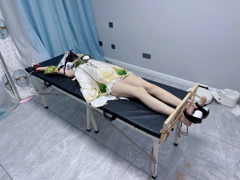 姿势:痒刑床+足枷(一定要固定脚趾)